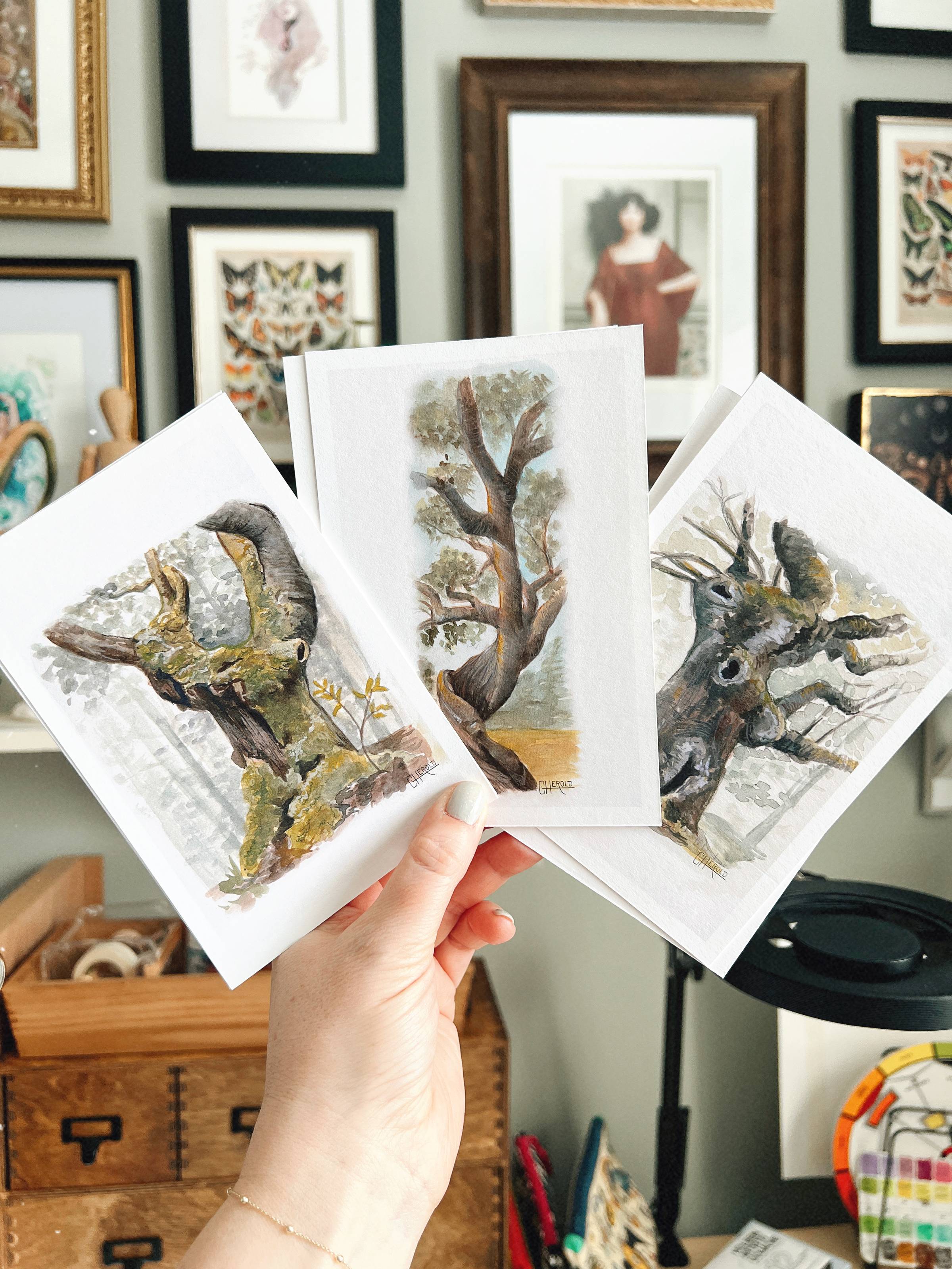 Remember the tree studies I mentioned? I scanned them and turned them into mini prints! Receive one for free for every $10 spent. Spend $30 or more and get all three prints! β