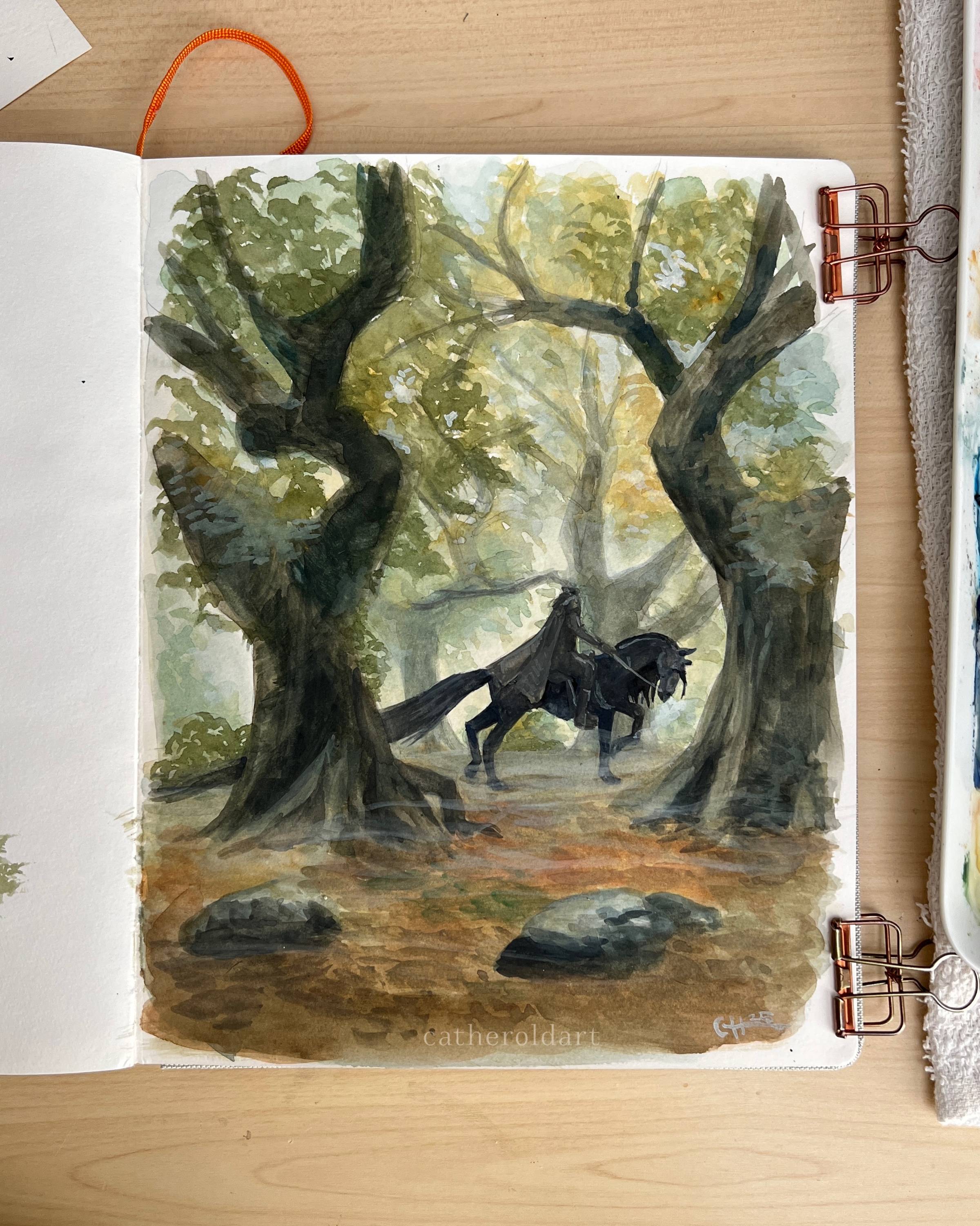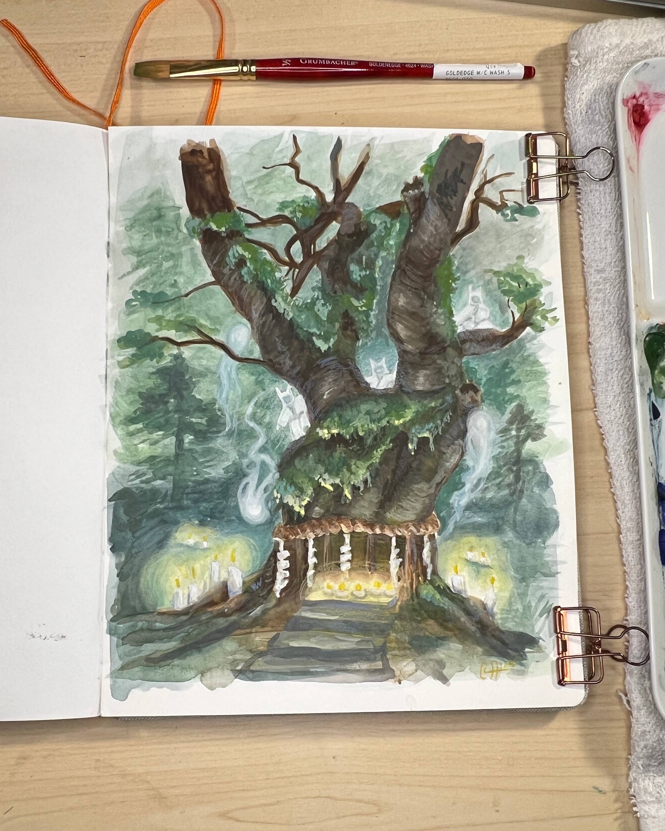 What started off as an environment study became a haunting scene of a Dullahan (think Headless Horsemen) riding through a lonely, mist filled forest. I'm happy with how it turned out but feel like I could have pushed it a bit further. But what I discovered with this painting was backgrounds are far less intimidating if the background is conceptualized first, and the character is treated like an accessory to the background. Definitely going to keep exploring this method and see if it helps me overcome my fear of backgrounds!